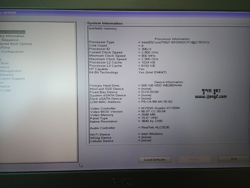 이제 시스템 사양을 확인해보는데 CPU 4910mq 맞고, 오오~ 액정 UHD 3840 x 2160 좋아! 사진엔 안 나왔지만요 RAM 16기가도 맞고, 그래픽 k1100m이네. 흠... k2100m 아니어서 아쉽긴 한데 뭐 괜찮지! 없는 거보단 낫고, 그런데 말입니다....!? SSD가 없네!!??? 아니 이게 무슨 일이지!!