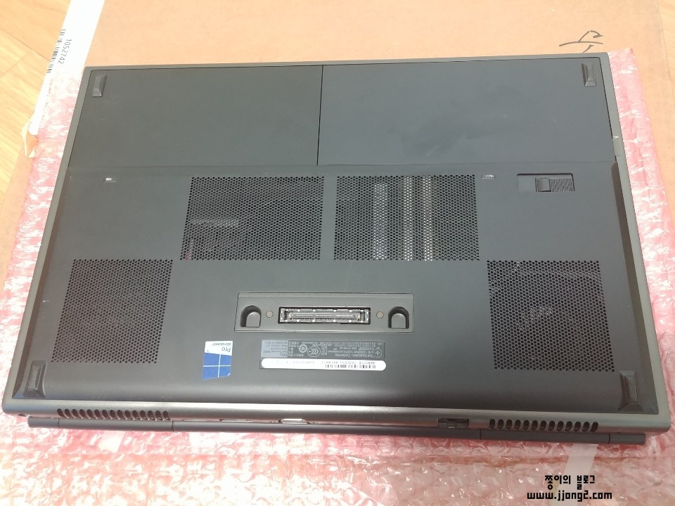밑에 사진입니다. 쪼오기 윈도우 Pro 스티커는 윈도우 pro 정품인증을 알려주는데, 메인보드에 귀속되어있는 DSP 형식으로 보입니다. 윈도우 10 정품 비싼 거 아시죠...? 에헴~ 노트북 잘 산거 같다는 생각이 한번 더 드네요. 귯귯