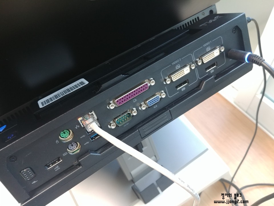 도킹스테이션 뒤에 인터넷선과 전원선을 연결해봤어요.